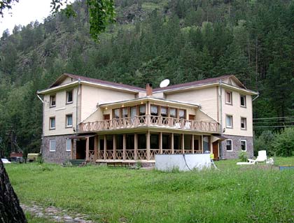 Гостиничный комплекс "Ареда-3 Гостиничный комплекс "Ареда-3" располагается приблизительно в 8 километрах от села Чемал на берегу реки Куба (Горный Алтай). "Ареда-3" - это первый на пути туркомплекс после поворота с асфальтовой дороги перед мостом через Кубу. Данная туристическая база представляет собой трехэтажный коттедж на девять двухместных номеров - 4 номера класса "люкс" и 5 "полулюксов". Все номера обставлены мягкой мебелью и оборудованы санузлами с горячей водой и душем. "Люксы" несколько просторнее, в них есть, телевизоры и вентиляторы. На первом этаже гостиницы находится каминный зал, кафе-бар, сауна с комнатой отдыха и большая веранда. Просторный холл с камином есть также на втором этаже. |